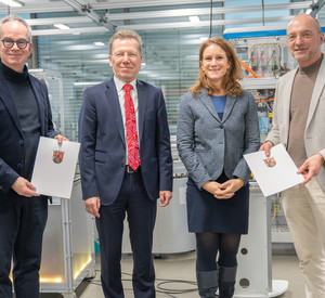 1,5 Millionen Euro für innovative Produktionsprozesse: Wissenschaftsminister Clemens Hoch übergibt Förderung für Projekt „Zukunft“ an Fraunhofer ITWM und IMM